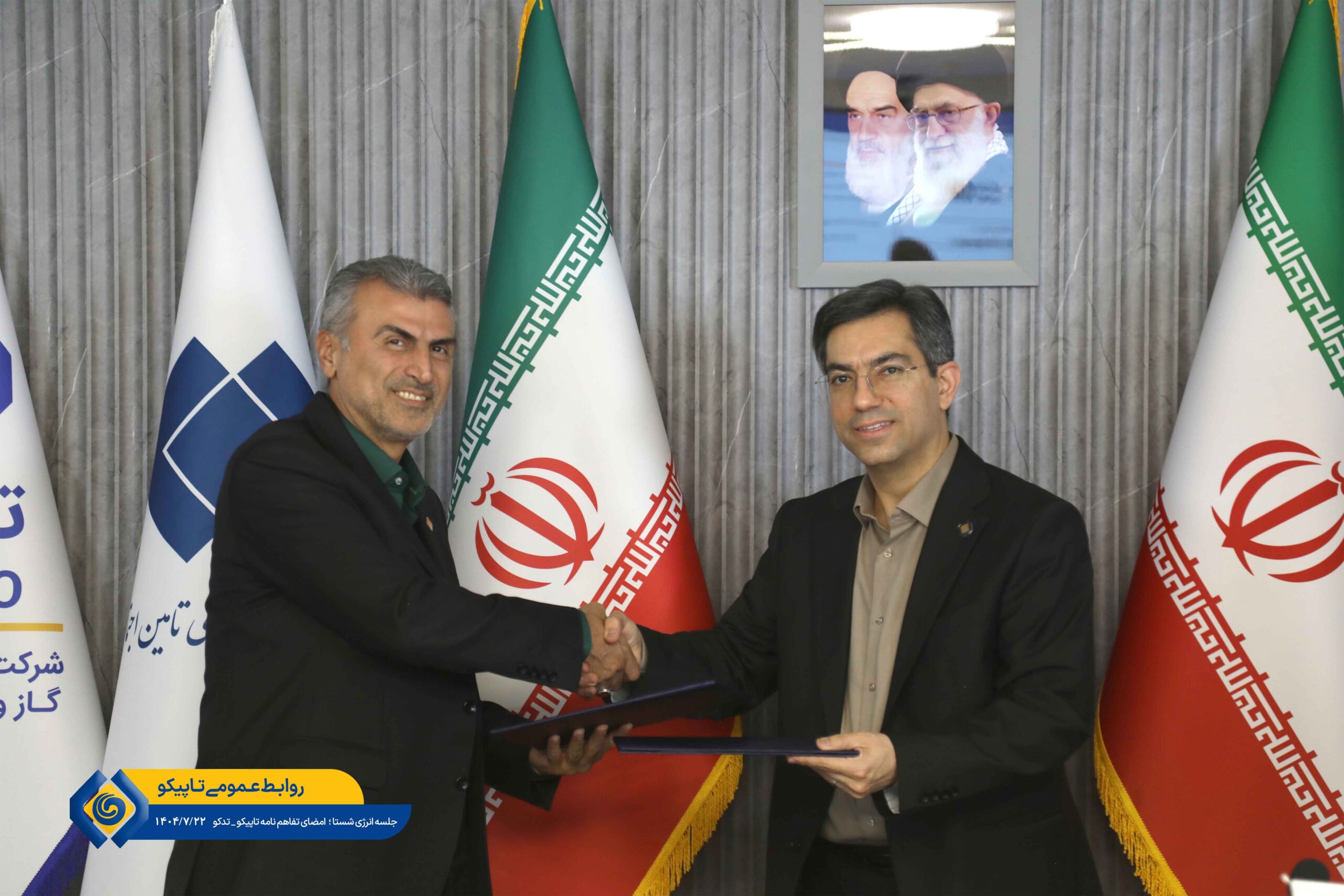 به گزارش پایگاه اطلاع رسانی تاپیکو، در حاشیه برگزاری جلسه کمیته انرژی شستا، دکتر روحاله شهیدیپور، مدیرعامل و نایب رئیس هیات مدیره هلدینگ نفت و گاز و پتروشیمی تأمین (تاپیکو) و دکتر بهمن صالحی جاوید، مدیرعامل هلدینگ توسعه مدیریت انرژی تأمین (تدکو) تفاهمنامه همکاری مشترک امضا کردند.